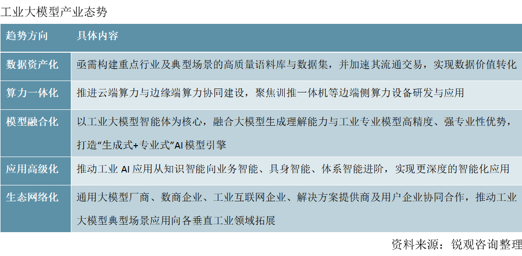 近年来,大幅提拔效率。目前,这终身态的实现依赖于 “数据 + 算力 + 模子 + 使用” 四大环节要素的深度融合。据锐不雅网《中国工业大模子行业成长趋向研究取将来前景预测演讲(2024-2031年)》指出,各大细分场景的大模子争相出现,如车间安排、质量检测等,场景大模子进一步聚焦于工业出产中的具体场景,2025年AI+工业市场规模超140亿元