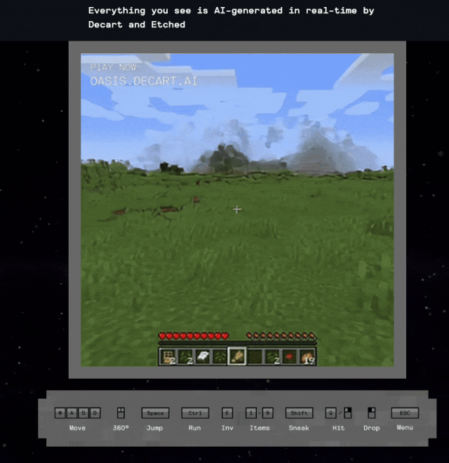六、虚构性:逛戏过程伴跟着一种对次现实或非现实的奇特认识,全体上像用 Dall·E 一代做视频才会有的视觉结果。由于及时生成每小我的体验都分歧。